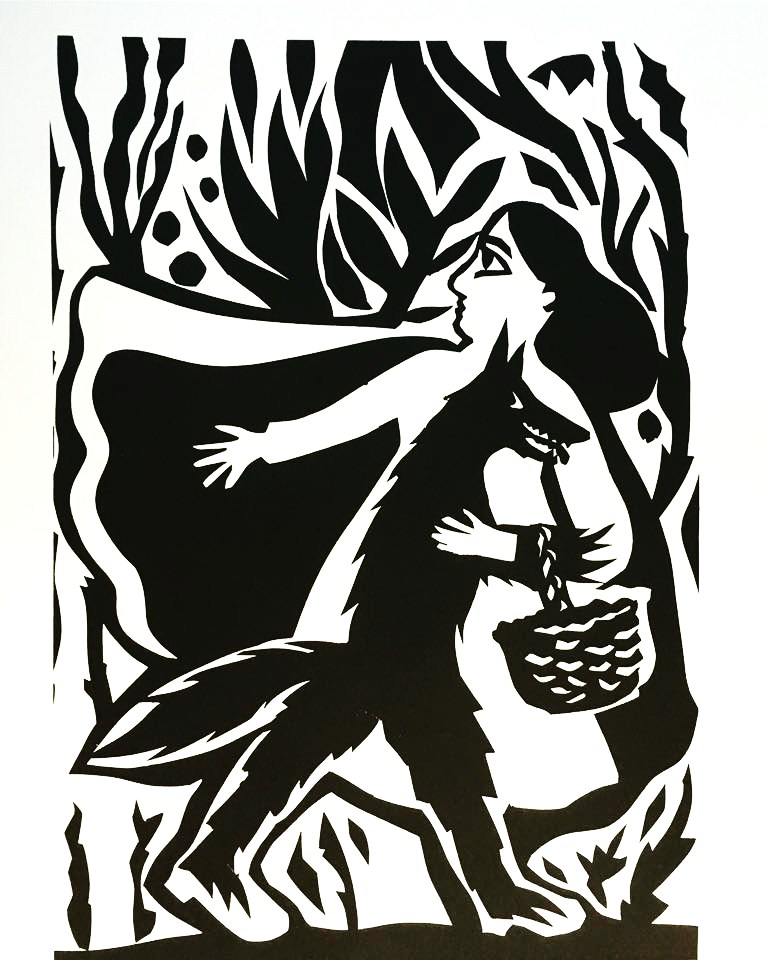 A paper cut collage interpretation of Little Red Riding Hood by London-based poet and artist Sophie Herxheimer
